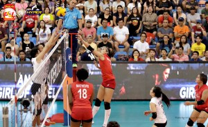 _S1A7093 Cignal’s Jovelyn Gonzaga tips the ball over the Iriga defenders